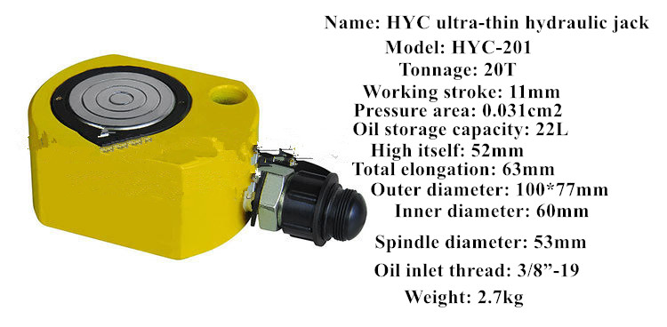 Type: Ultra-thin hydraulic jack Lifting weight: 20(T) Minimum height: 52 (mm)