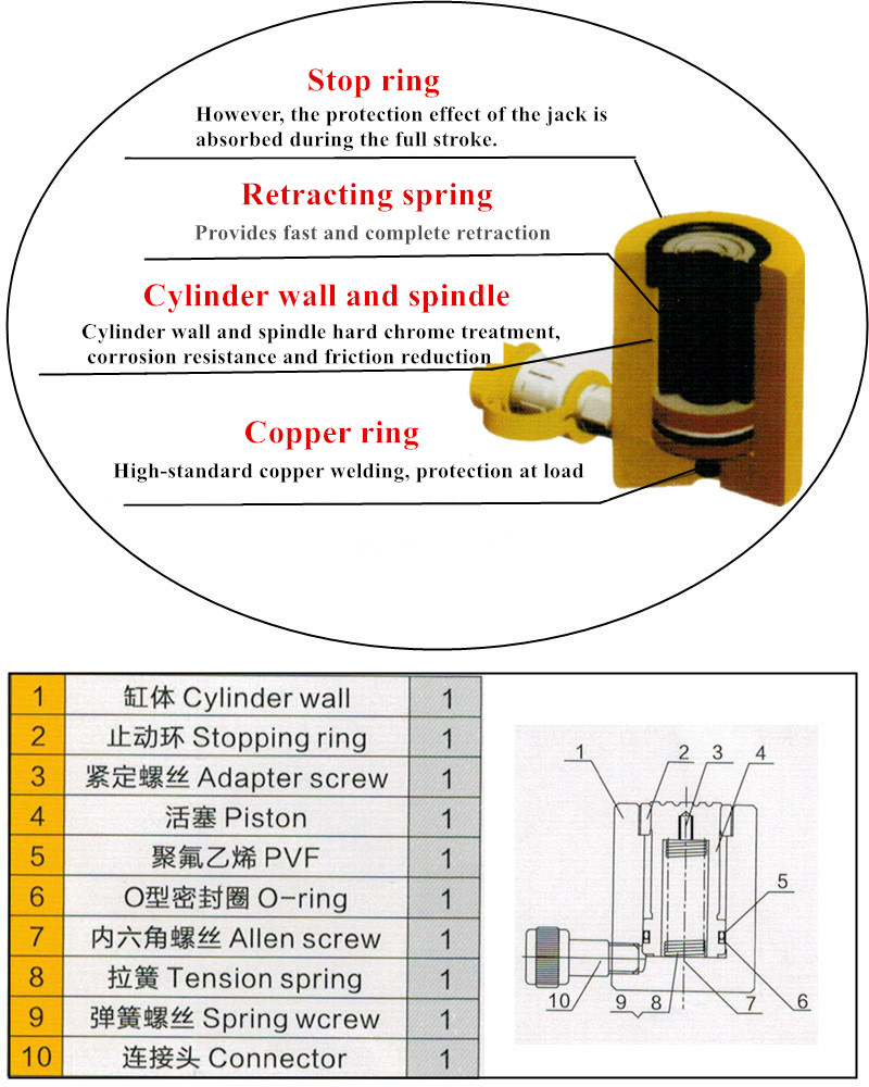 Type: Single acting hydraulic jack Lifting weight: 10 (T) Minimum height: 120 (mm)