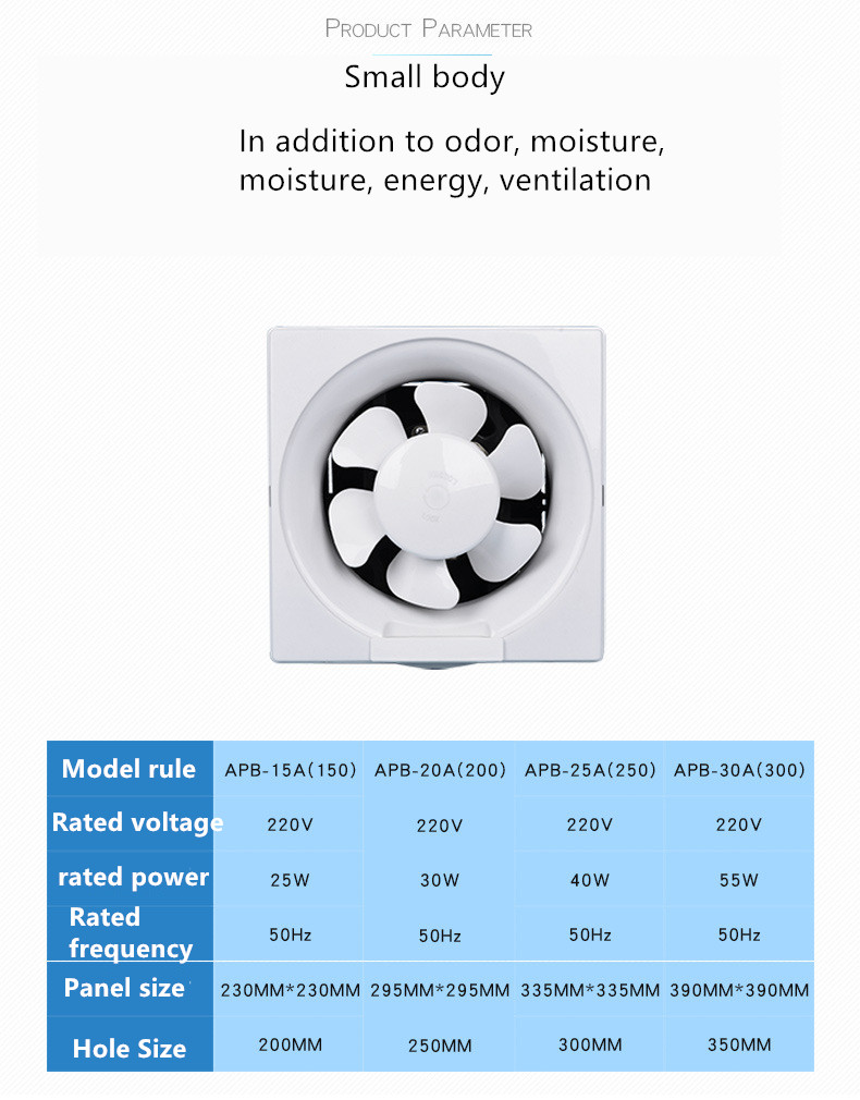 Product specifications 6", 8", 10", 12" Fan type Exhaust fan