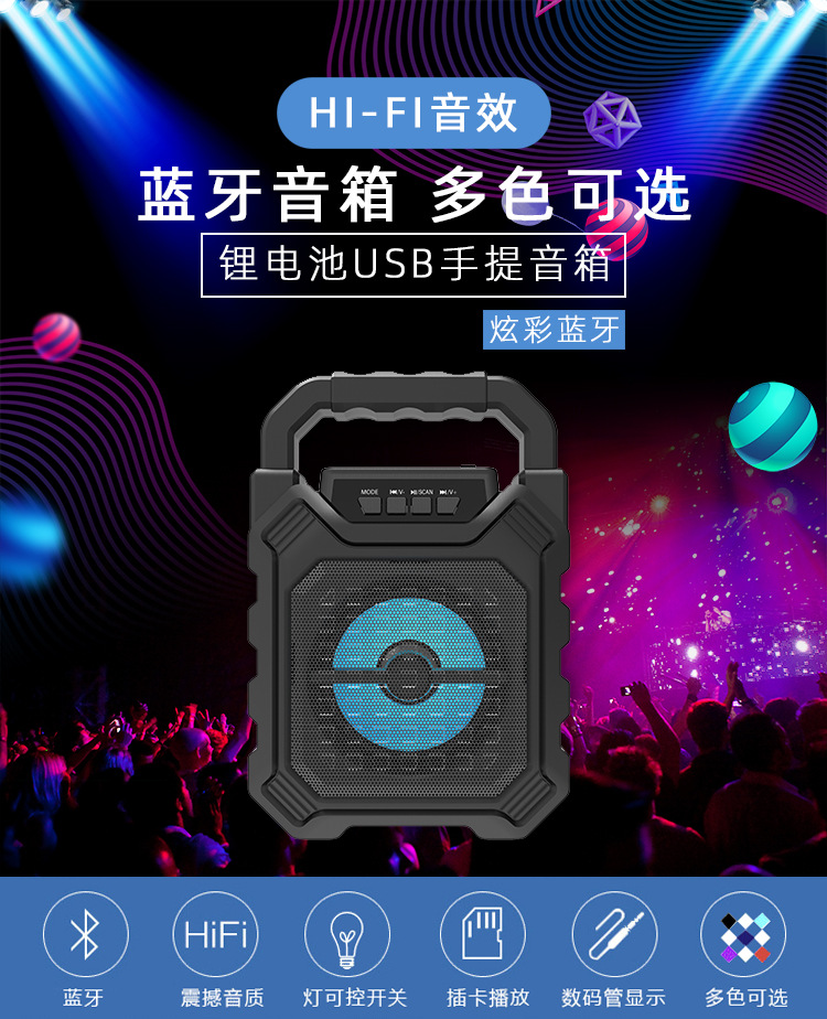 1. Diverse functions and strong practicability. Support wireless Bluetooth playback, TF card playback, U disk playback, FM radio, hands-free calling, AUX audio input, excellent outdoor products.