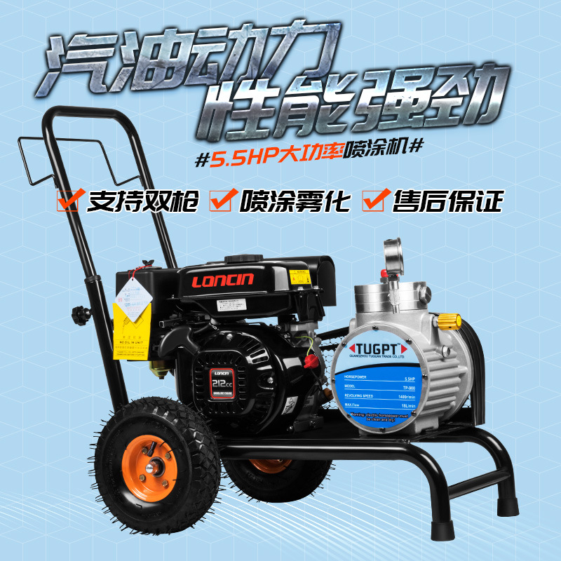 T900汽油动力高压喷涂机油漆涂料隔膜大流量5.5HP无气喷漆机