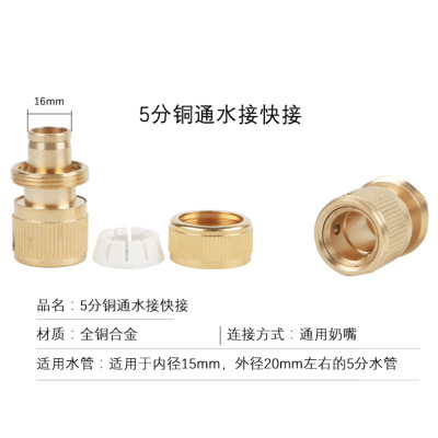 全铜5分水管通水接头 高压洗车水枪水管快速接头分软管接头配件