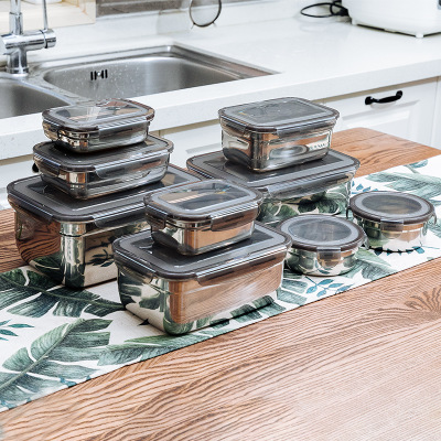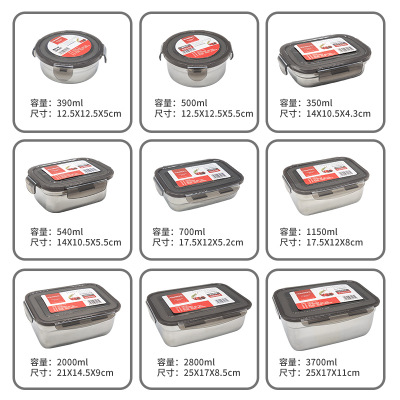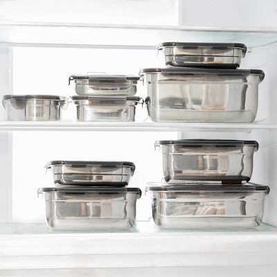 304不锈钢保鲜盒饭盒 大容量冰箱密封收纳盒 储物盒 带盖水果便当盒 饭盒 保鲜盒