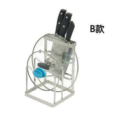 不锈钢砧板架锅盖架扁条拉丝纹多功能菜刀架厨房收纳置物架溧水架