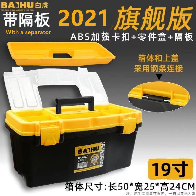 白虎工具箱12寸 16寸19寸 带隔板 ABS塑料工具箱 手提工具箱 多功能汽车维修车载塑料工具箱美术箱 工具包