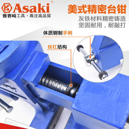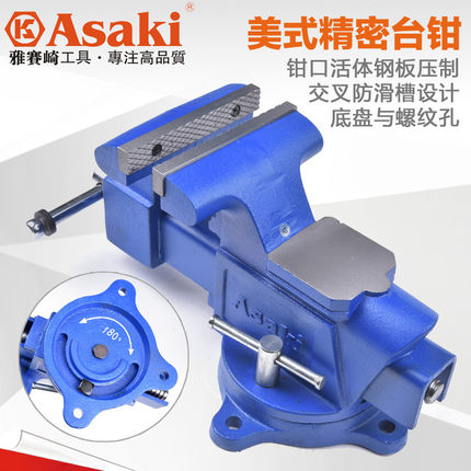 雅赛崎 精密台虎钳6928 6929 6930 6931 4寸5寸6寸8寸带砧铣床钳工重型木工台钳夹具