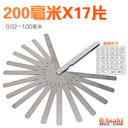 雅塞崎高精度塞尺 间隙尺不锈钢单片气门塞规厚薄规0.02-1.0mm 直板尺 0136 01307 0138 0139 0140 0141 0142