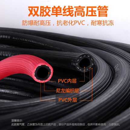 雅赛崎氧气管 焊割工业用乙炔管 带橡塑双色管10mm连体软管气割煤气管AK-0093 0094