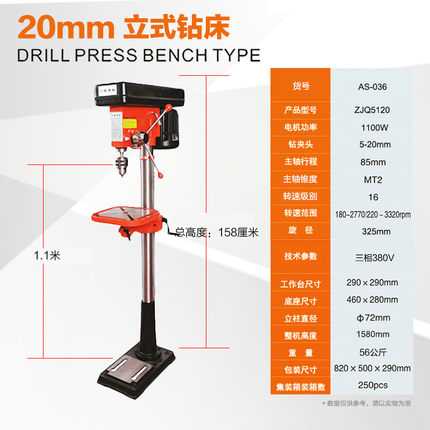 雅赛崎工业级台钻 220V家用小型钻床380V大功率精密多功能电钻三相AK-036立式钻床