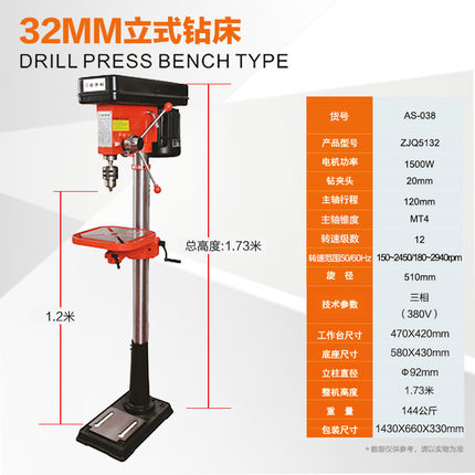雅赛崎工业级台钻220V 32mm立式钻床 家用小型钻床380V大功率精密多功能电钻三相 AS-038