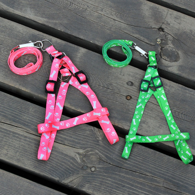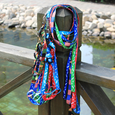 小型犬印花狗链子 热转印狗绳子 骨头花牵狗链 宠物牵引绳