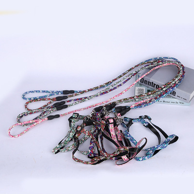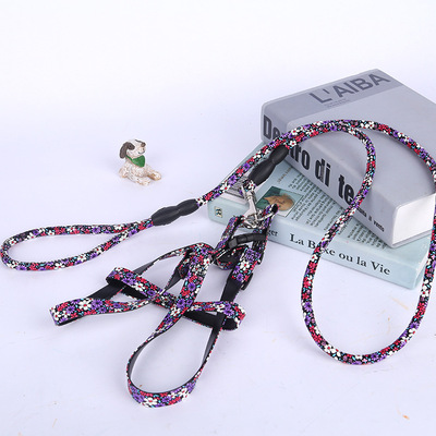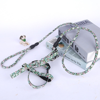 宠物用品 碎花PU胸背带 宠物牵引胸背套装 中型犬宠物狗带可调节