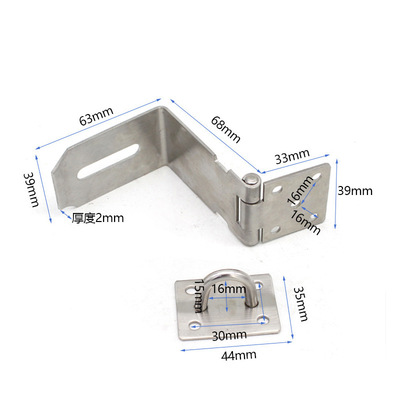 左钢加厚不锈钢锁牌 插销 锁 90度加厚直角保险栓搭扣可搭挂锁