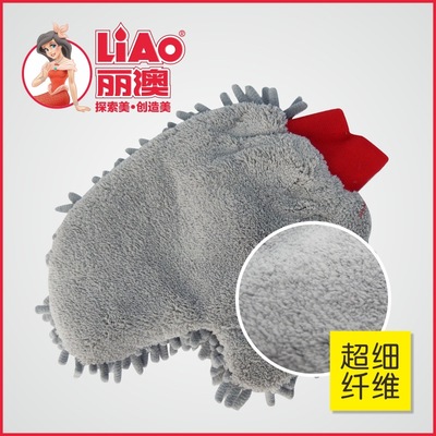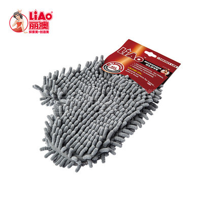 丽澳雪尼尔擦车手套 珊瑚虫双面带手指手套柔软不伤车漆洗车工具 洗车手套