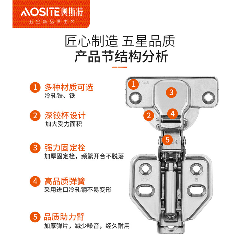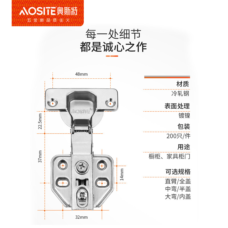 三维调节液压橱柜衣柜铰链 阻尼缓冲烟斗合页家具五金配件