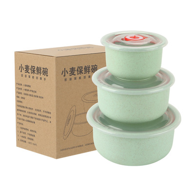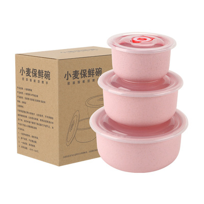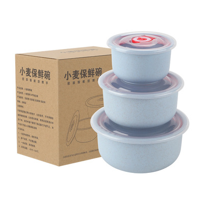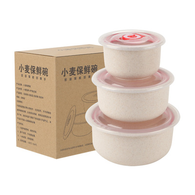 微波炉密封碗三件套 饭盒 餐盒小麦秸秆保鲜碗 塑料便当盒商务礼品定制logo