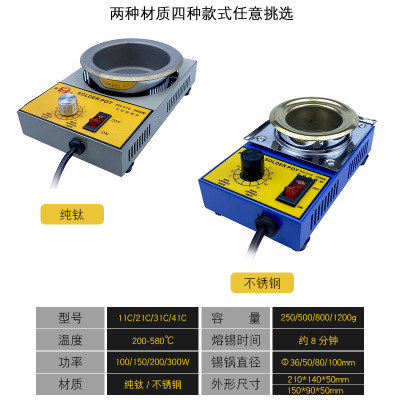 无铅环保融锡炉220V小型台式圆形纯钛可调温锡锅线头镀锡钛合金锅