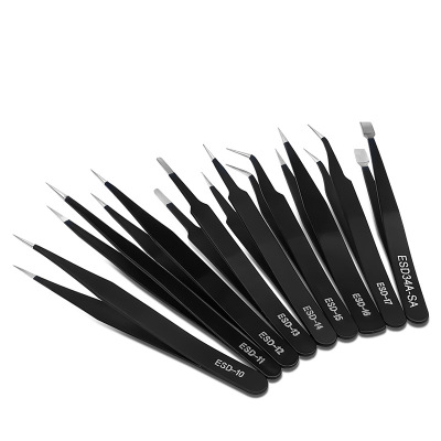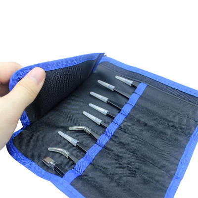 帆布九件套不锈钢防静电镊子电子维修燕窝嫁接睫毛专业尖弯头镊子