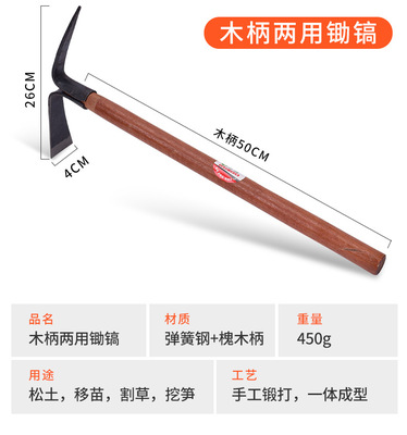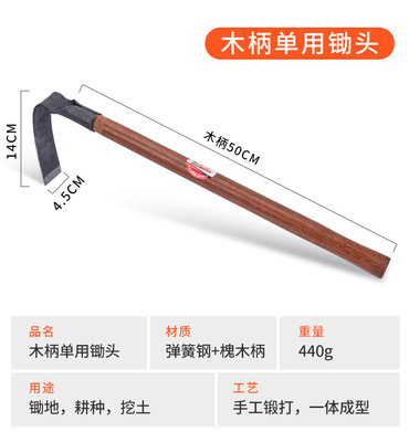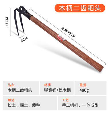 锻打小锄头园林除草松土锄 花锄二用锄 农用种菜锄 耙子带槐木柄