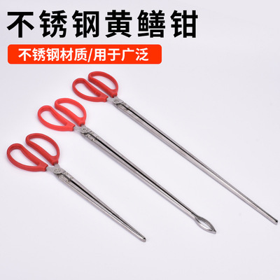 厂家批发新款泥鳅夹子带齿螃蟹钳蛇夹小龙虾不锈钢黄鳝夹黄鳝钳子
