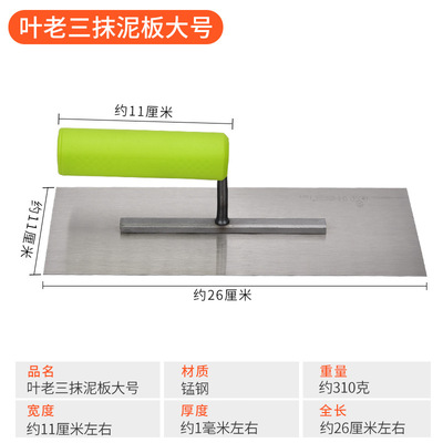 叶老三 建筑瓦工匠作工具铁抹子 木柄抹泥板 泥板 抹灰板平底刮灰板