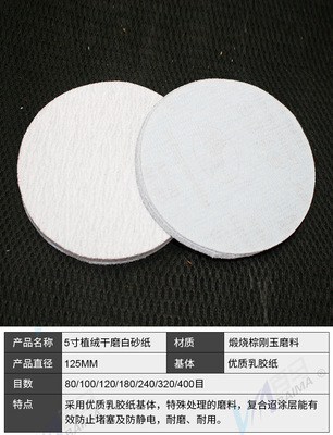 金牛5寸植绒背绒白砂纸片打磨抛光神器水干细圆形沙纸气动打磨机