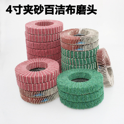 4寸百洁布拉丝轮夹砂抛光轮角磨机不锈钢打磨抛光片 百叶轮飞翼轮