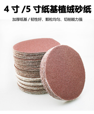 180G加厚5寸植绒砂纸片 魔术贴背绒圆盘拉绒片 不锈钢金属打磨片