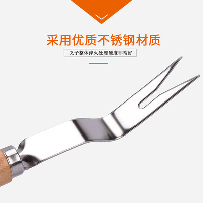 立锦园林用品不锈钢器 根器 园艺拔草器 除草工具 育苗叉取根器榉木柄