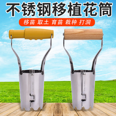 不锈钢移苗器 花筒移栽器 塑胶柄木柄移花器 园艺园林打孔器移栽器