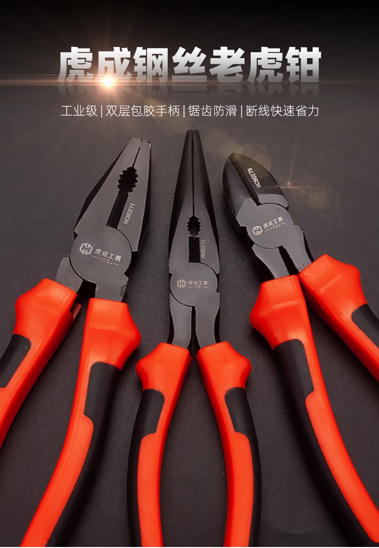 虎成德式斜咀钳 虎皮柄6寸8寸斜嘴钳 斜口钳 经典柄钢丝钳 尖嘴 钳子
