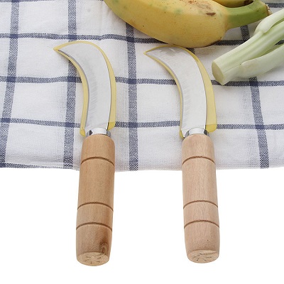 不锈钢水果菠萝刀 刀 木柄果皮香蕉小弯刀