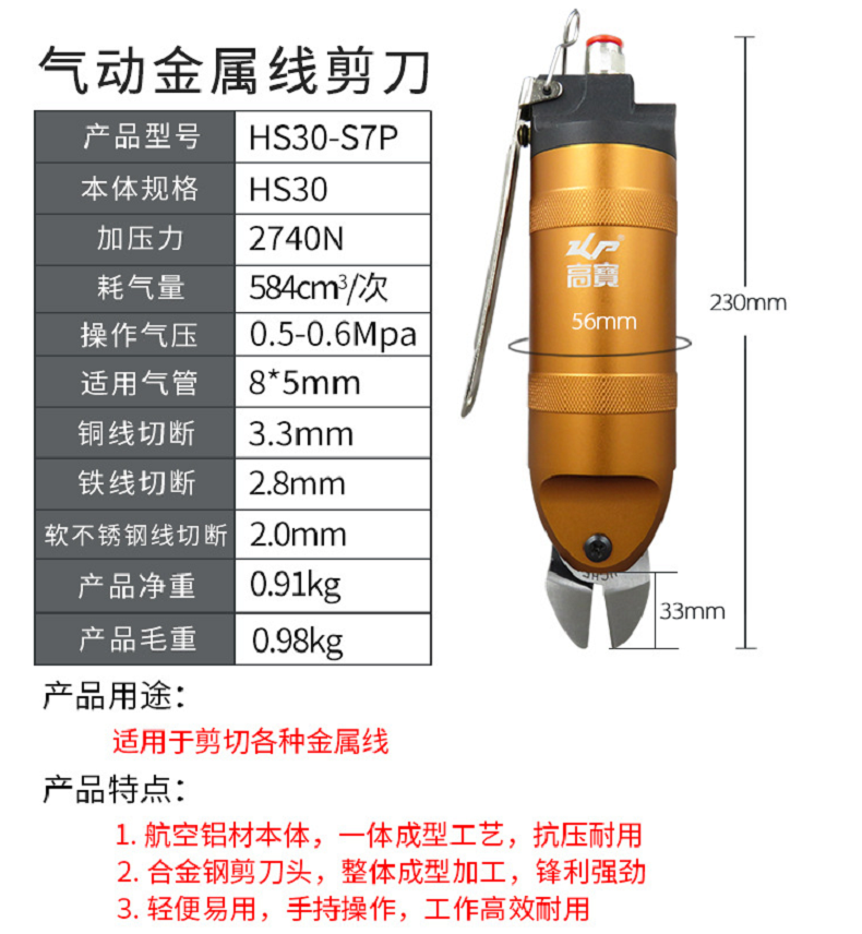 高宝HS30-S7P气动剪刀 铜线铁线气剪斜口金属线气动剪钳厂家直销