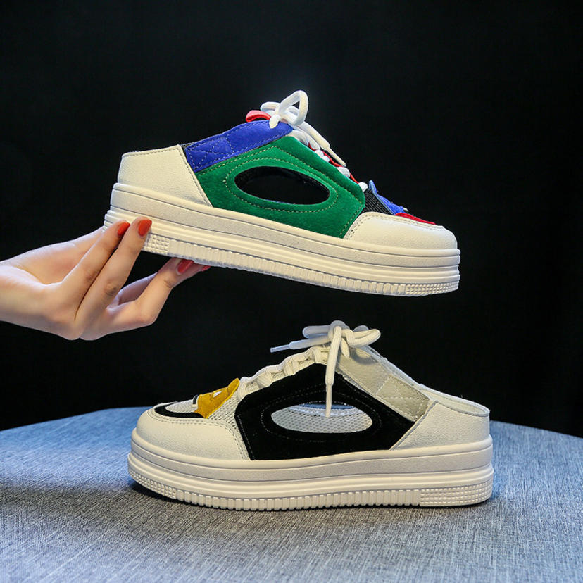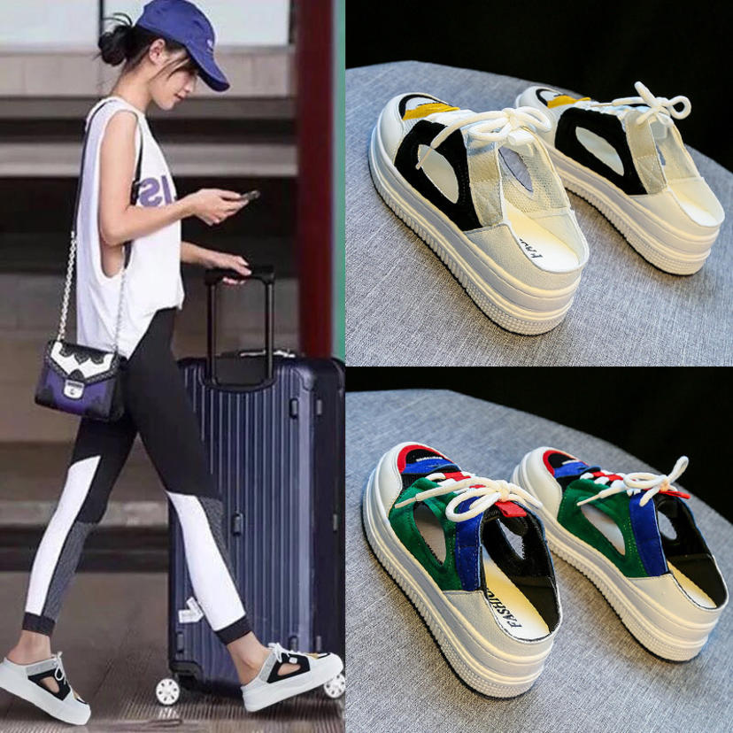 2019新款夏季包头半托拖鞋镂空透气小白鞋平底女一脚蹬女鞋凉鞋潮(鞋子5)