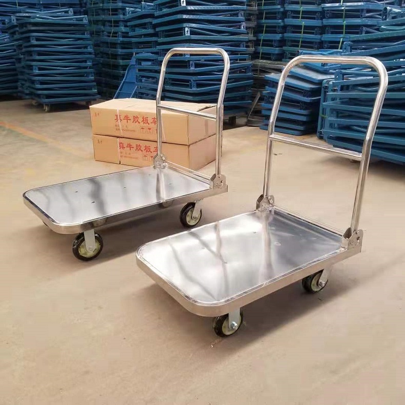 不锈钢 手推车 平板车 搬运推货拉货 拖车 轻便家用 折叠手拉 静音 拉车