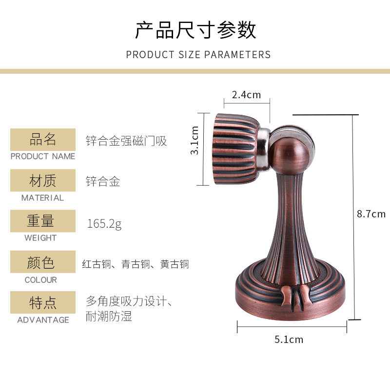 新款红古锌合金门吸 门碰 美式加厚强磁家用复古门顶门碰