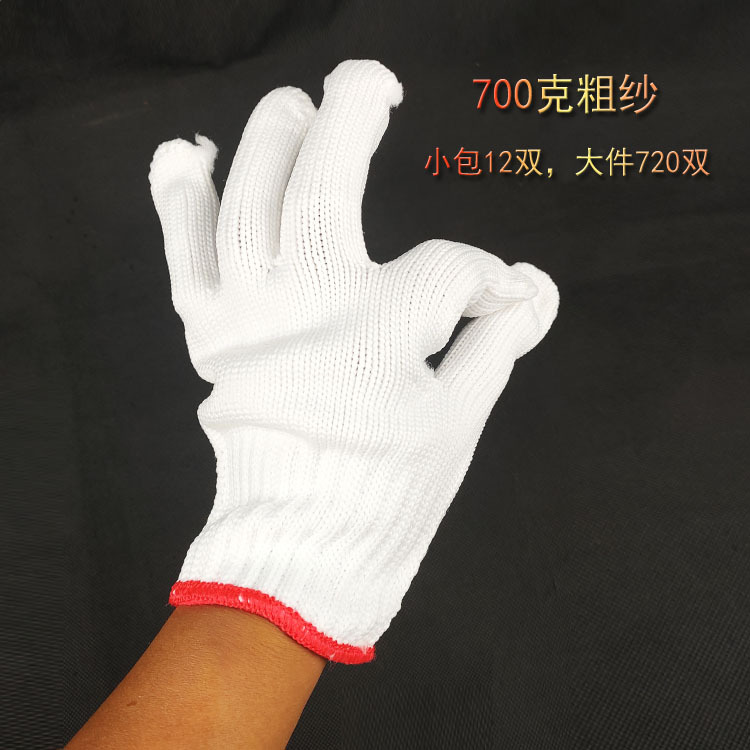 700克白色尼龙手套劳保防护柔软防滑耐磨透气纱线棉纱手套