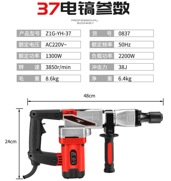 航典 电镐 0837大功率混凝土工业重型电镐 专业破碎 单电镐 电锤 电凿 带电源线13A英式插头