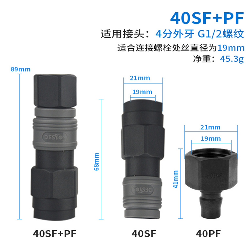 塑钢快速接头 风枪空压机气动工具气管SF+PF 塑钢C式 快速接头