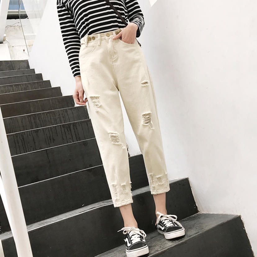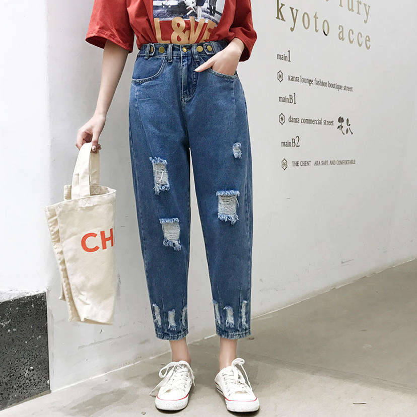 2019夏季女装新款韩版百搭破洞宽松阔腿九分牛仔裤子老爹裤潮(裤子13)