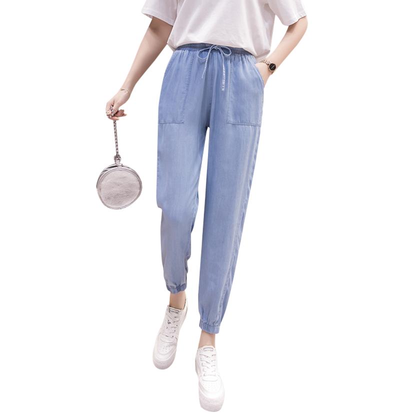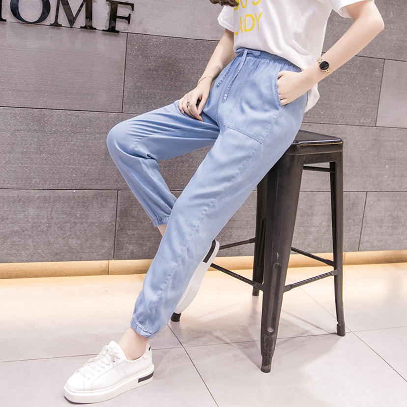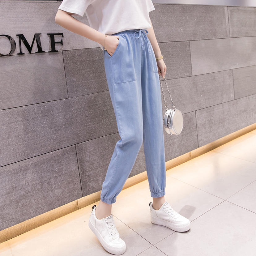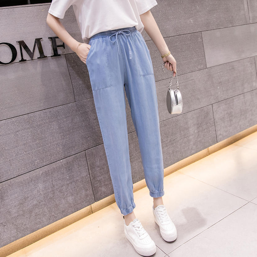 2019夏季新款韩版超薄天丝牛仔九分裤休闲高腰哈伦松紧带小脚裤女【DB】l062(裤子18)