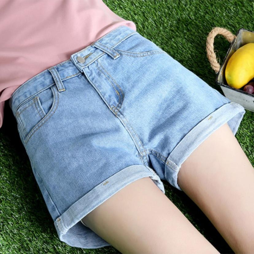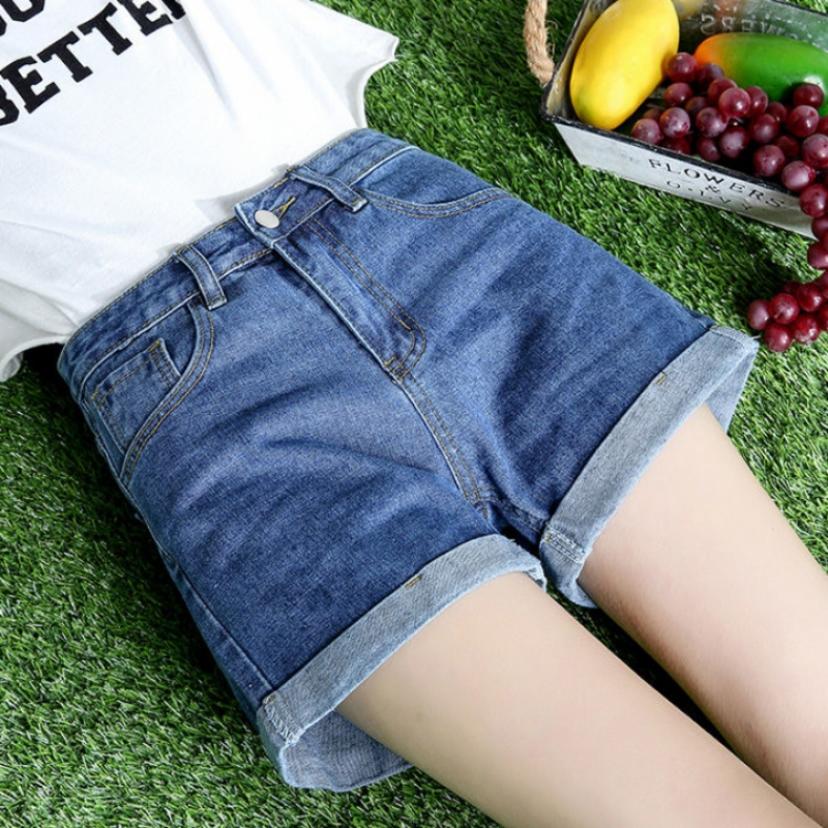 2019新款牛仔短裤女夏韩版高腰原宿风宽松阔腿百搭卷边热裤潮(鞋子19)