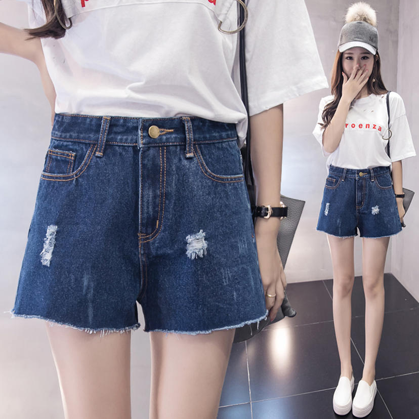 2019春夏花朵刺绣牛仔裤毛边磨破高腰浅色修身热裤女短裤女(裤子24)