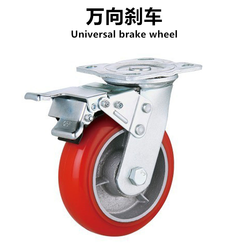 重型圆边铁芯PU 轮 定向轮 固定轮 万向轮 万向刹车轮 脚轮 轮子 承重130-450KG