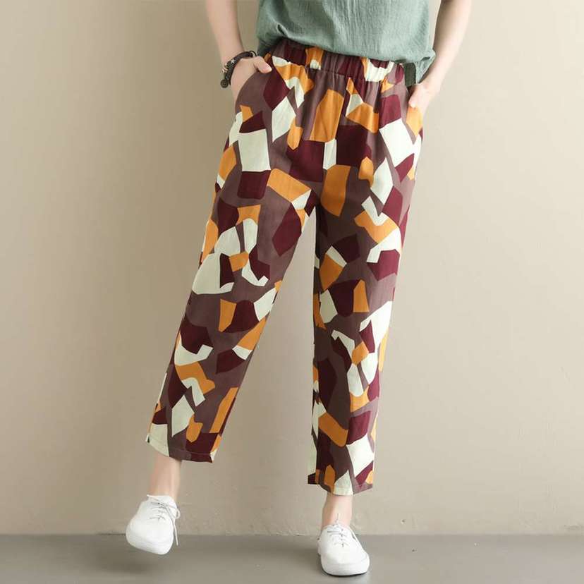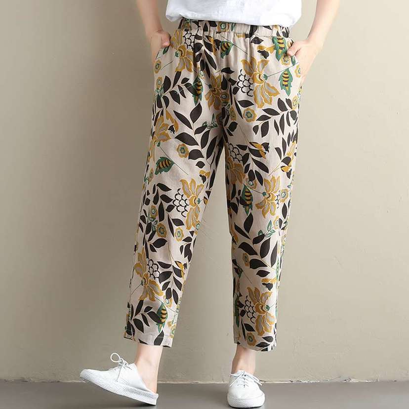 2019夏新款宽松大码文艺印花九分裤2色可选(裤子46)