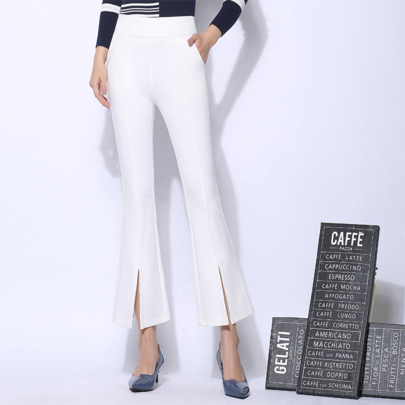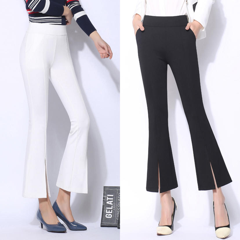微喇裤女高腰弹力修身休闲大码开叉喇叭裤职业装阔腿女裤子【DM】k490(裤子51)