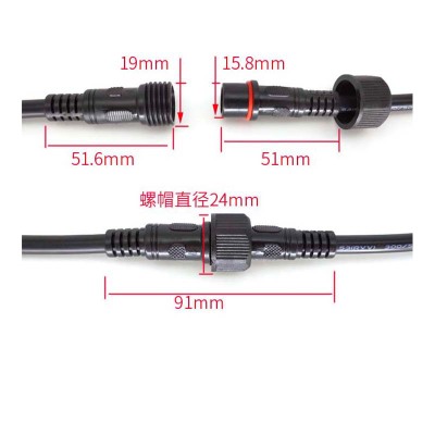 纯铜足平方正标防水公母对接线户外防雨2芯1.5平防水公母接头