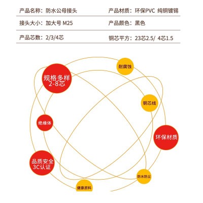 M25防水公母接头护栏管舞台LED灯具专用电源连接器