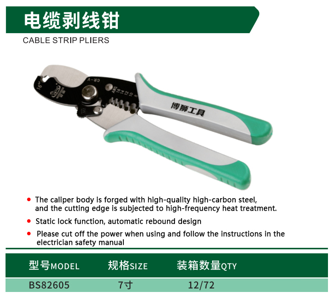 博狮 7寸多功能手动剥线钳电工剥皮钳 钳子 电缆剥线钳 剪线钳 电缆钳