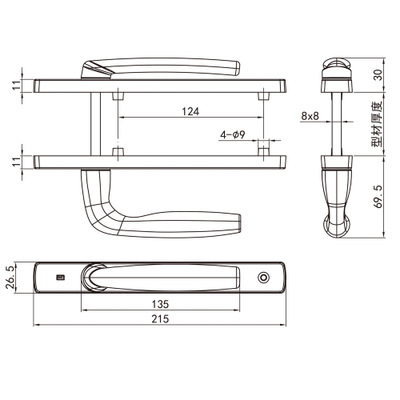 豪华平开房门锁执手/ 高级平开门执手/ 铝合金门把手/ 对开门锁DL-011